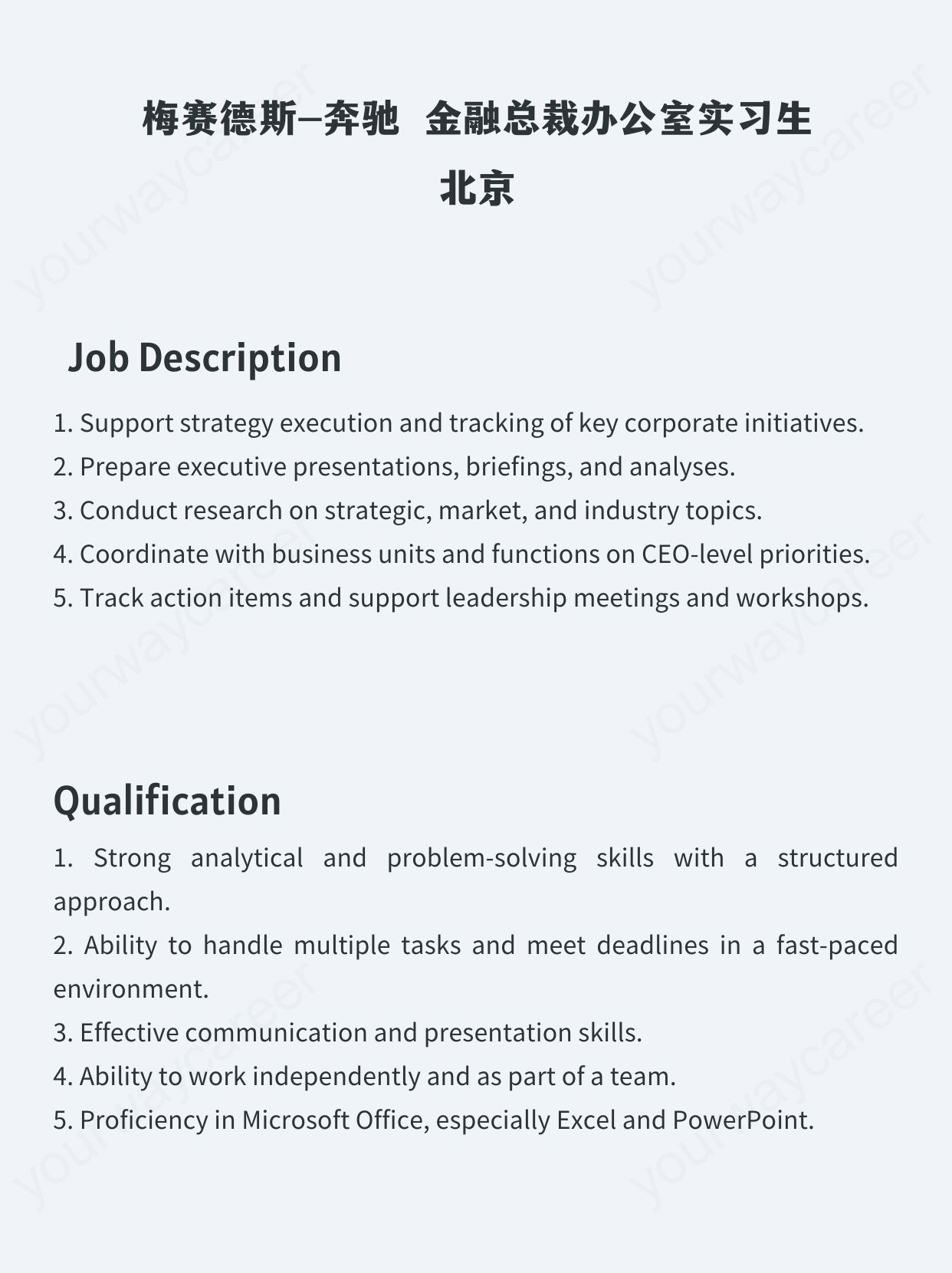 北京|梅赛德斯-奔驰 金融总裁办公室实习生