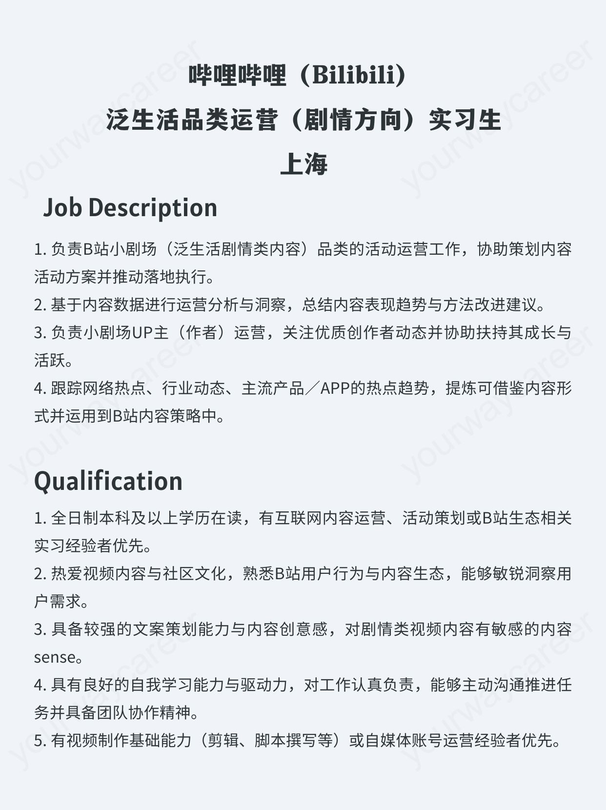 - 上海|哔哩哔哩(Bilibili)泛生活品类运营(剧情方向)实习生