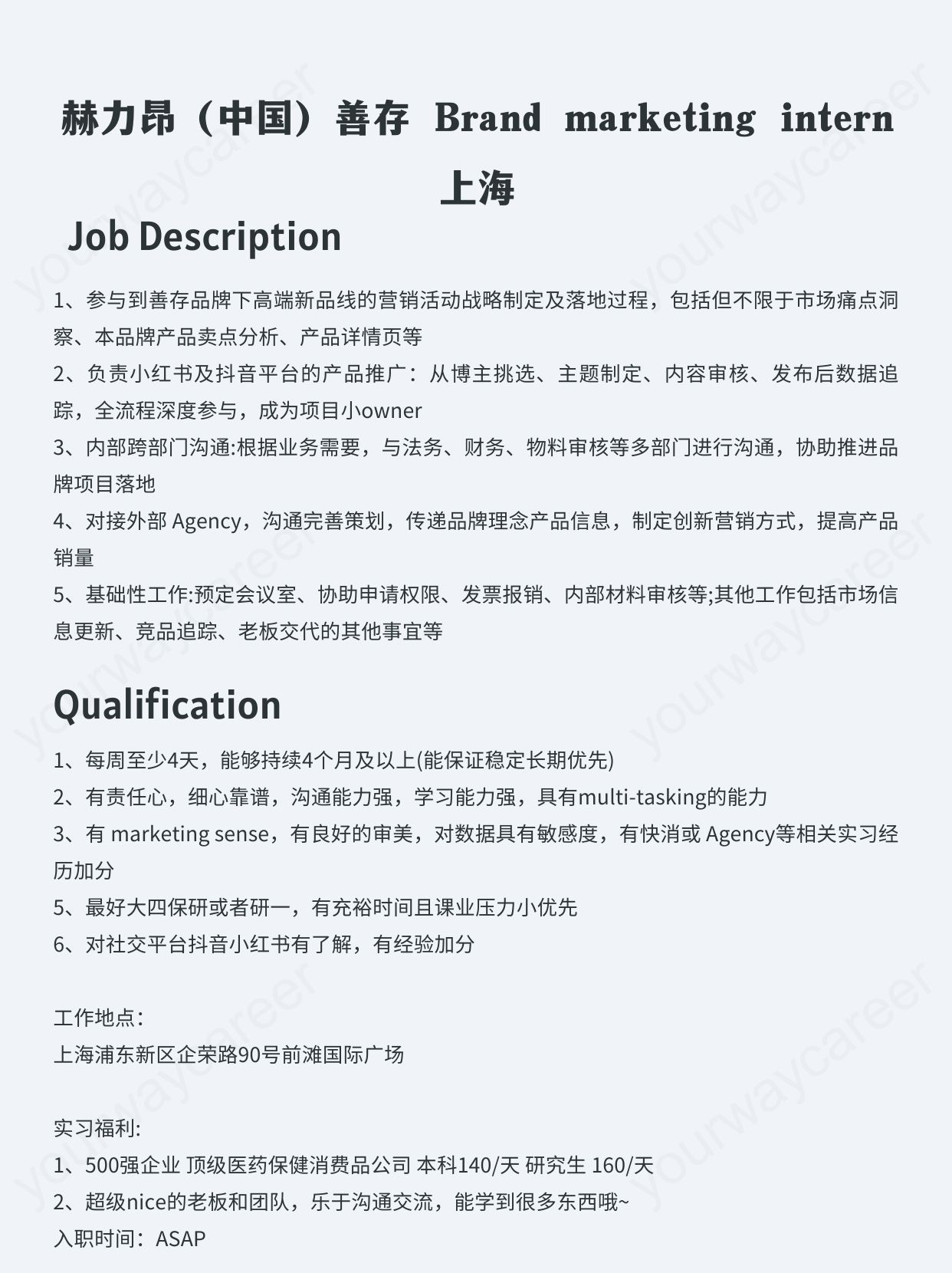 - 上海|赫力昂(中国)善存 Brand marketing intern