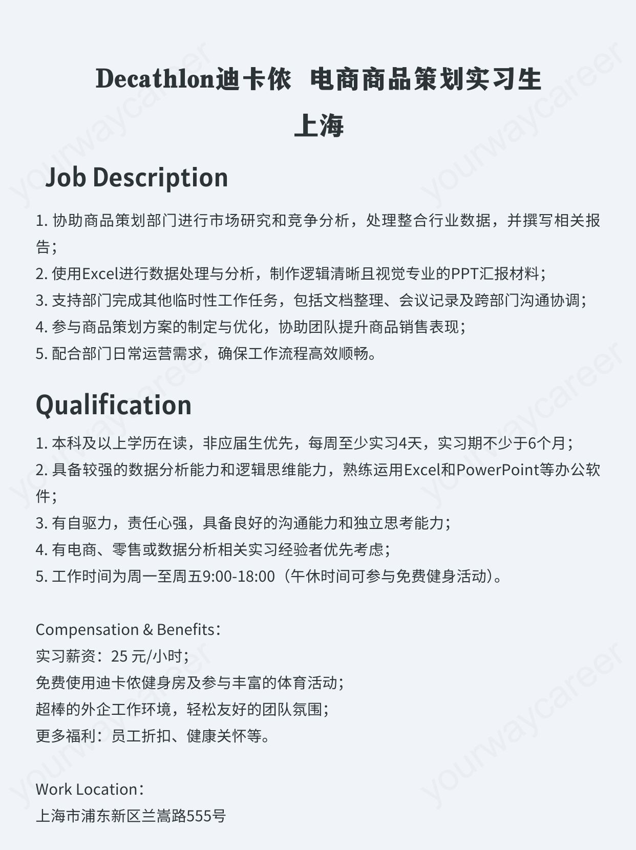 - 上海|Decathlon迪卡侬电商商品策划实习生