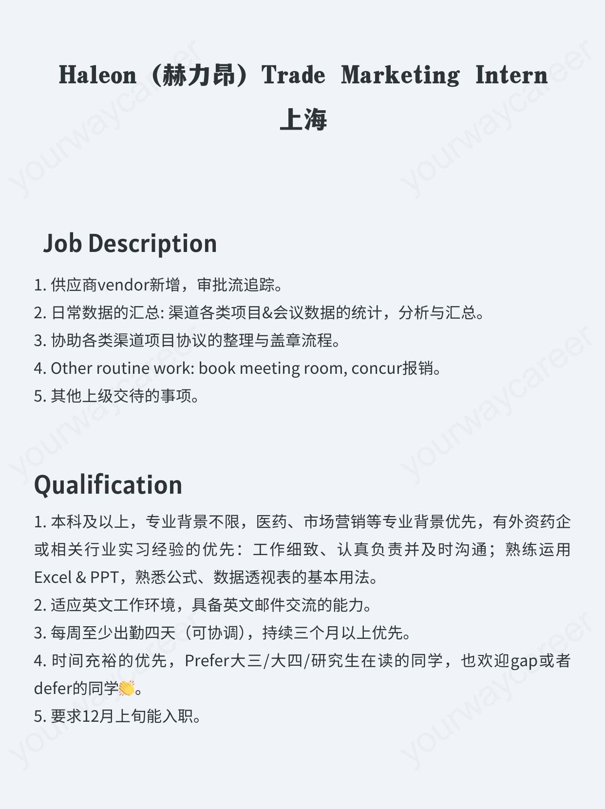 - 上海|Haleon (赫力昂)Trade Marketing Intern