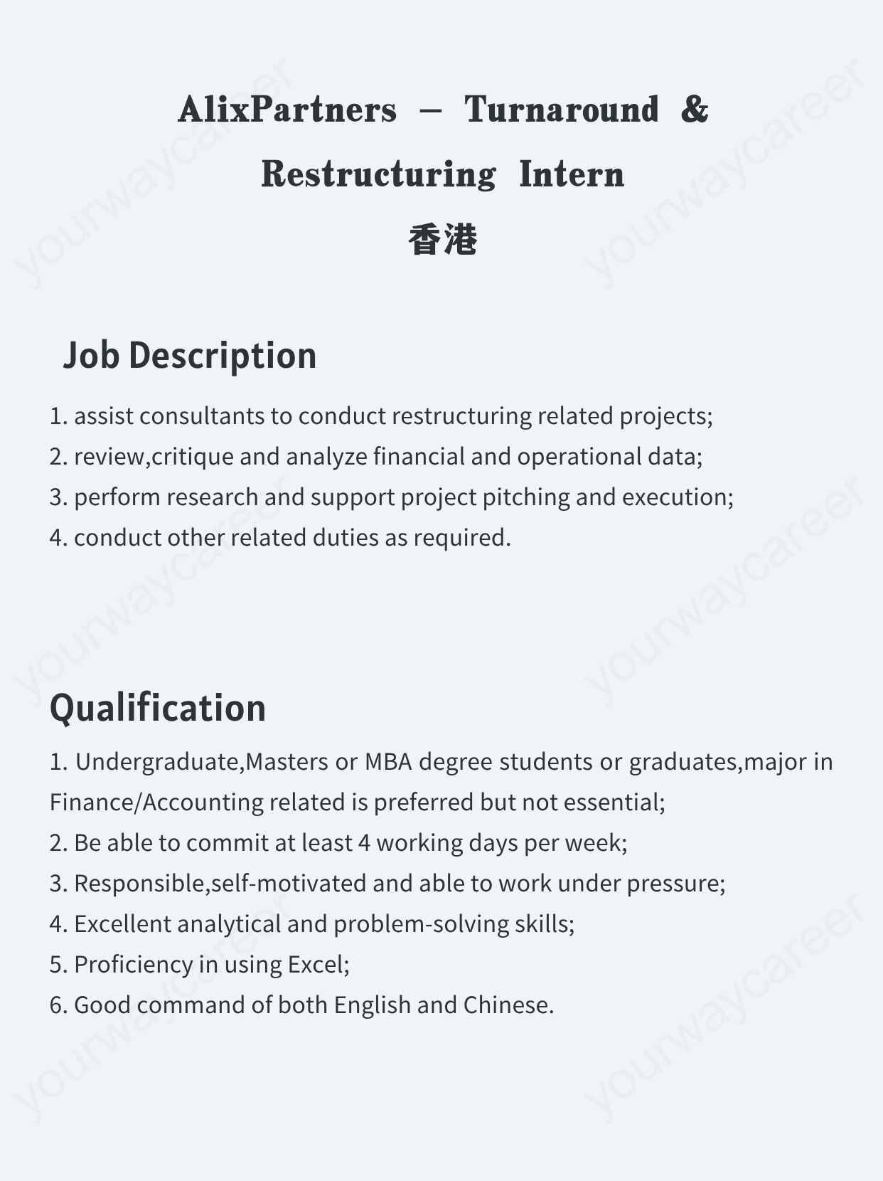 - HK|AlixPartners - Turnaround & Restructuring Intern