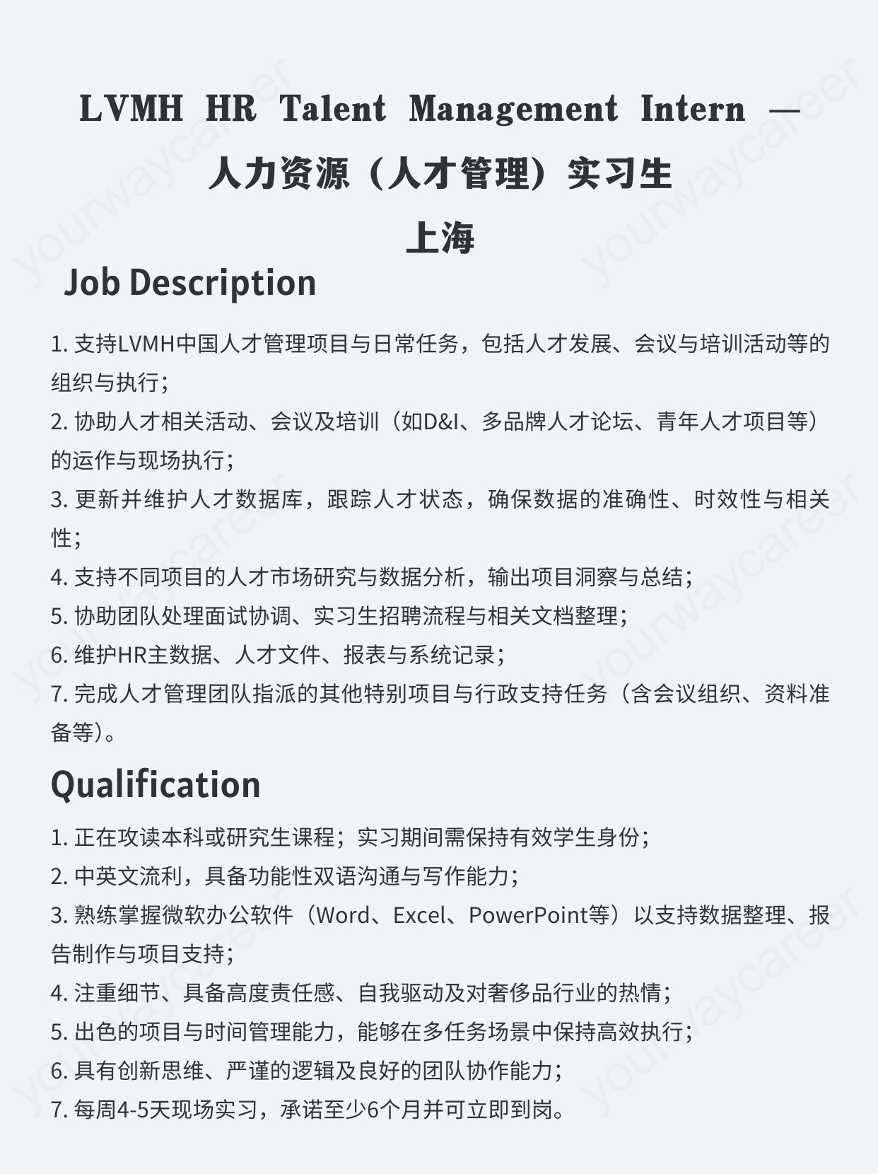 - 上海|LVMH HR Talent Management Intern — 人力资源(人才管理)实习生