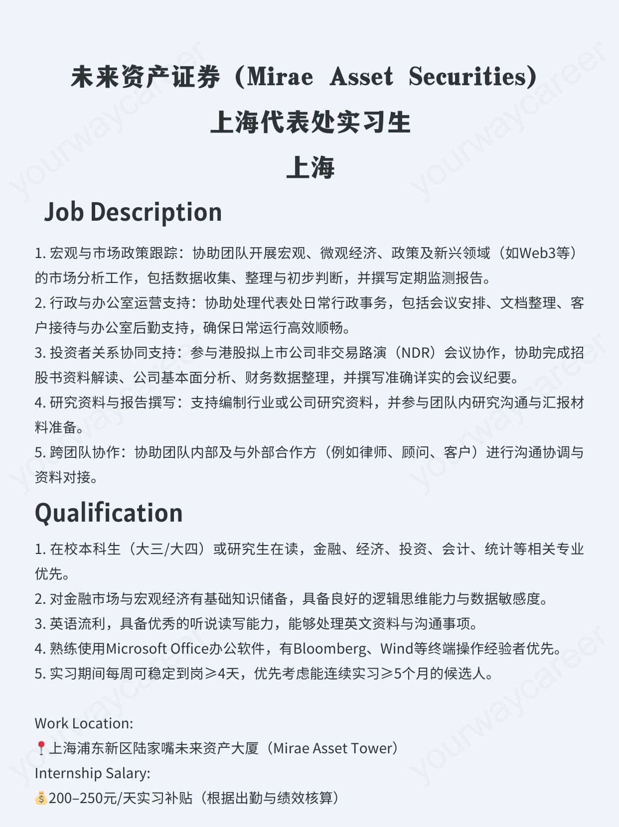 - 上海|未来资产证券(Mirae Asset Securities)上海代表处实习生